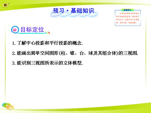 2013版高中数学全程学习夺冠方略配套课件:1.1.3中心投影和平行投影(苏教版必修2)