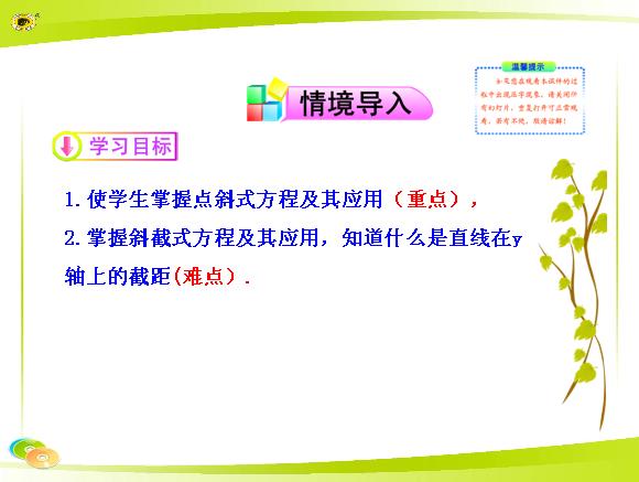 2013版高中数学全程学习夺冠方略多媒体教学课件:2.1.2 第1课时 点斜式(苏教版必修2)