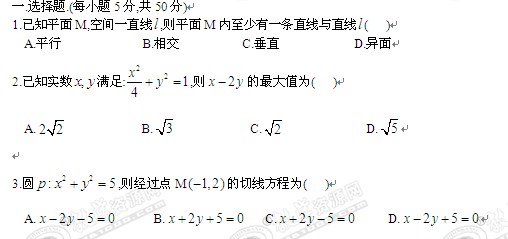 重庆一中09-10学年上学期高二12月月考(数学文)