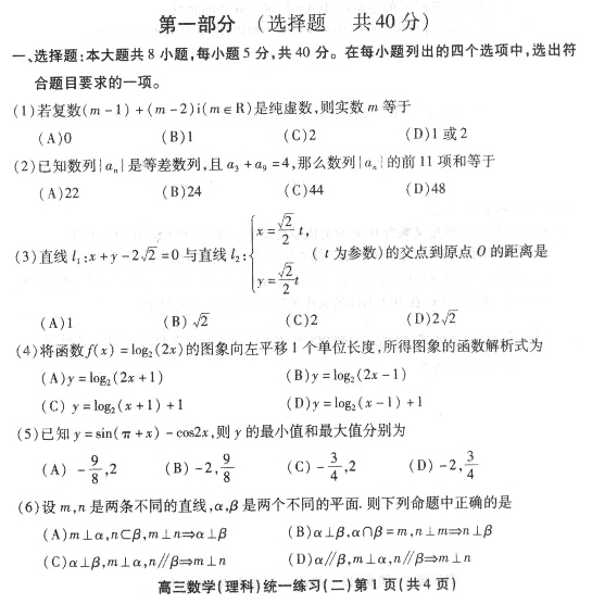 【2014丰台二模】北京市丰台区2014高三下学期统一练习(二)(数学理)扫描版