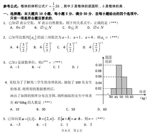 广东省华南师大附中2014届高三5月综合测试(三模)(数学文)扫描版