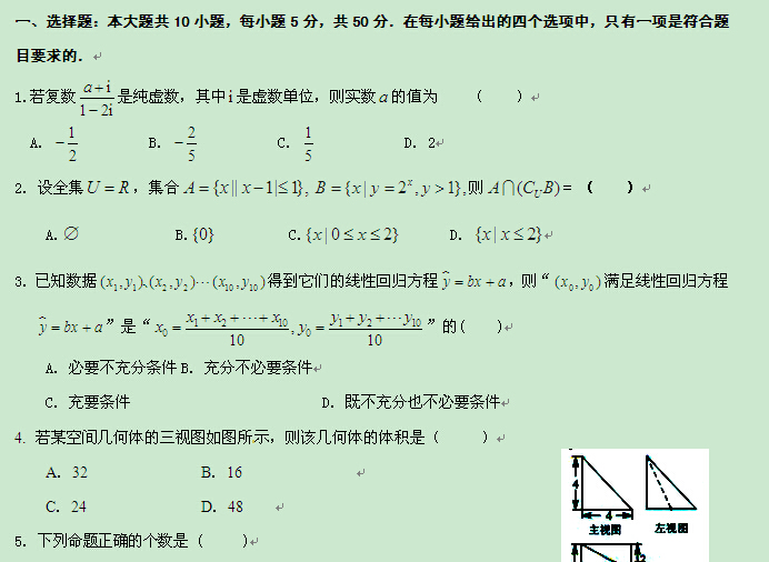 江西省南昌三中2014届高三第三次模拟考试(数学文)