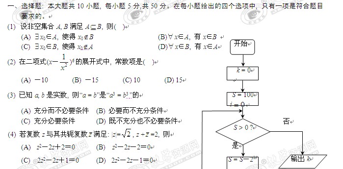 浙江省2010届高三上学期第一次调研测试(数学理)