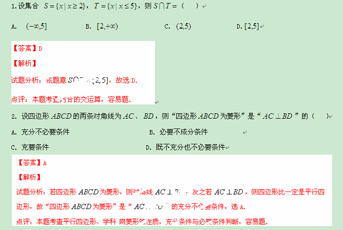 2014年普通高等学校招生全国统一考试浙江卷(数学文)扫描版小题解析