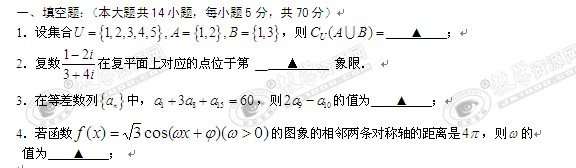 江苏省东台中学2010届高三上学期诊断性测试(数学)
