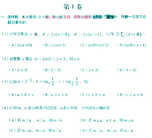 2014年普通高等学校招生全国统一考试辽宁卷(数学文)扫描版
