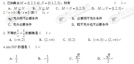 安徽省毫州一中2010届高三上学期第三次月考(数学文)缺答案