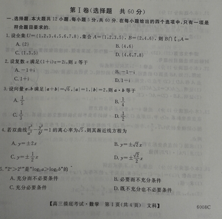 广西梧州、崇左2015届高三摸底考试(数学文)扫描版