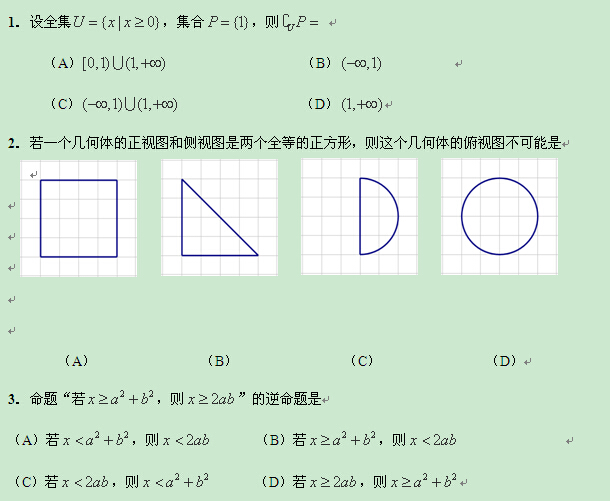 四川省成都市2015届高三第一次诊断试卷(数学文)