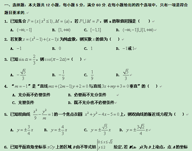 宁夏银川一中2015届高三年级第五次月考(数学文)