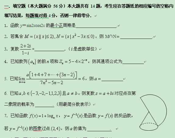 上海市2014学年第一学期长宁区高三教学质量检测试卷(数学文)