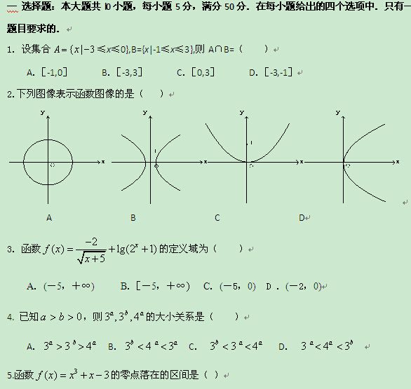 贵州省龙广一中2014-2015学年高一上学期期末考试(数学)