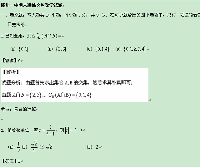 山东省滕州市第一中学2015届高三上学期1月期末统练(数学文)解析版
