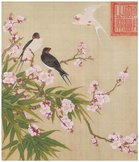 双飞燕子几时回?夹岸桃花蘸水开。