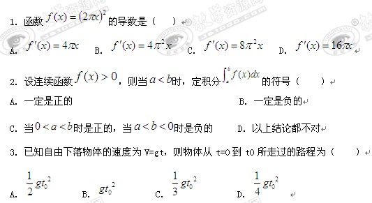 福建省厦门六中09-10学年高二下学期3月月考(数学理)