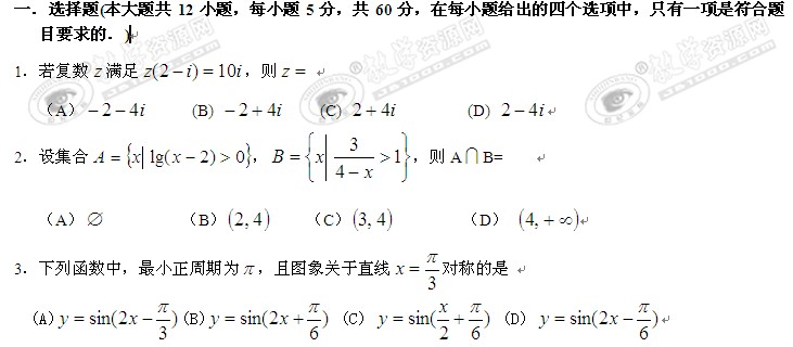 云南省昆明八中2010届高三上学期第三次月考(数学理)