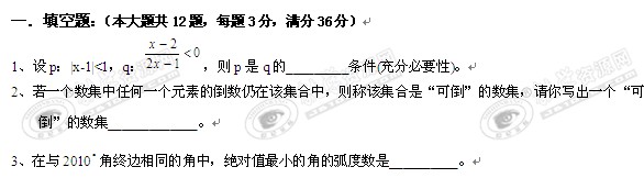 上海交大附中09-10学年高一上学期期终试卷(数学)