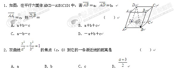 吉林省实验中学09-10学年高二上学期期末考试(数学理)