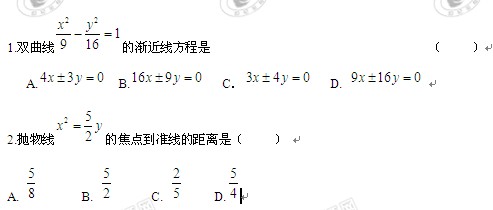 浙江省杭州二中09-10学年高二上学期期末测试题(数学理)