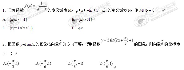 湖北省黄冈中学2009年秋季高三期末考试(数学理)