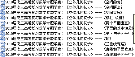 2010届高三高考复习数学专题学案:《立体几何初步》(共11套)
