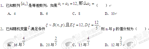 云南省2010届高中毕业生第二次复习统一检测(数学理)