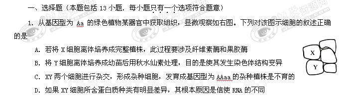四川省资阳市2010届高三第三次高考模拟(理综生物)