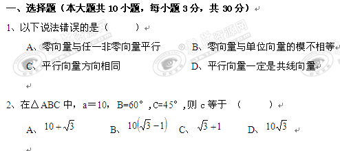 安徽省师大附中09-10学年高一下学期期中考试(数学)