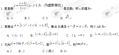 山东省潍坊市2010年高考适应性训练A(数学文)