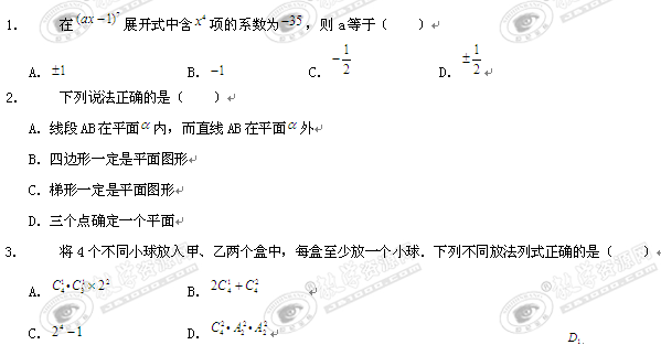 重庆市西南师大附中09-10学年高二下学期期中考试(数学理)