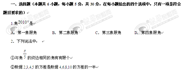 河南省河大附中09-10学年高一下学期期中考试(数学)