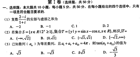 安徽省马鞍山市2010届高三第三次质检(数学理)扫描版