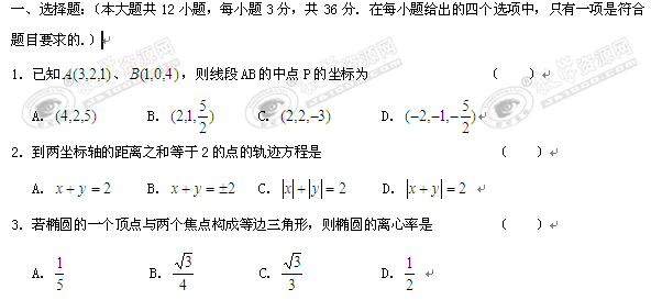 浙江省东北三校09-10学年高二下学期期中联考(数学理)