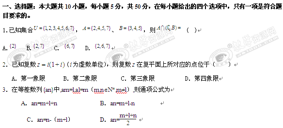 2010年普通高等学校全国统一招生高考数学考前冲刺(安徽卷文)