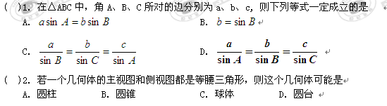 福建省三明市五校09-10学年高一下学期期中联考(数学)