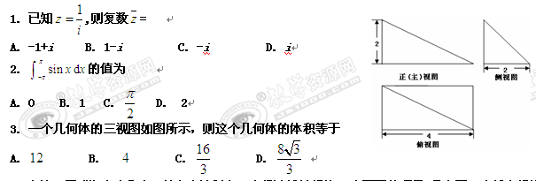 湖南省衡阳市八中2010届高三毕业班适应性考试即第十次月考试题(数学理)