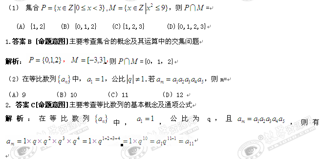 2010年普通高等学校招生全国统一考试(北京卷)(数学理)解析版