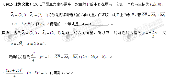 2010年高考数学填空试题分类汇编——向量