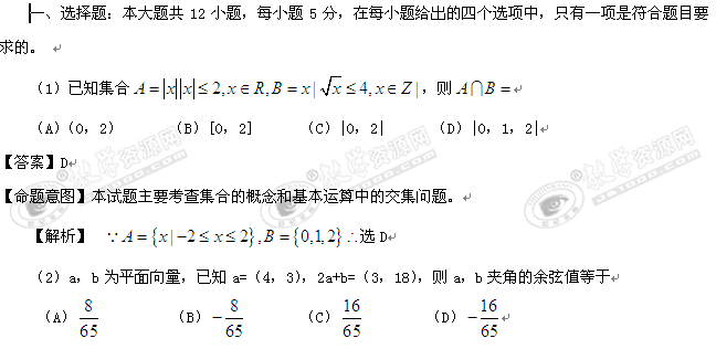 2010年普通高等学校招生全国统一考试(新课标卷I)(数学文)解析版
