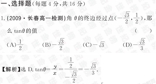[精练精析]1.2.1.1任意角的三角函数(一)(人教A版必修四)