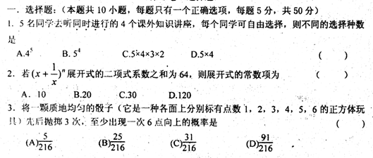 福建省福州市三校09-10学年高二下学期期末联考(数学理)扫描版