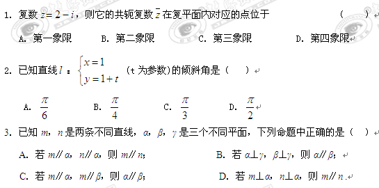 浙江省温州市四校联考09-10学年高二下学期期末考试(数学理)