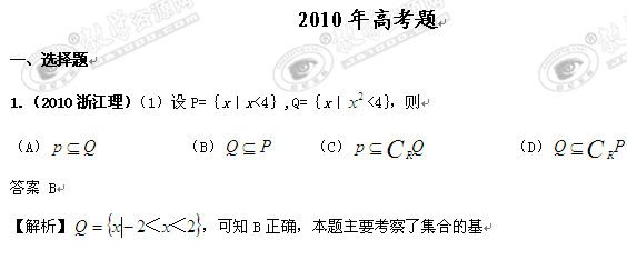 2011年高考数学复习最新3年高考2年模拟:第1章 集合与常用逻辑用语 第一节 集合