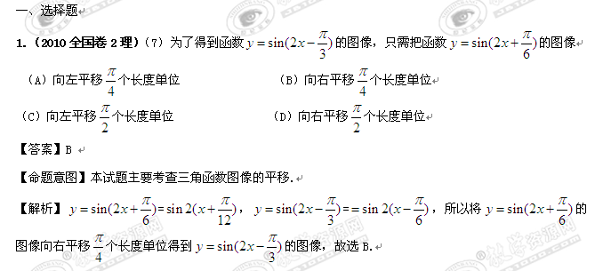 2011年高考数学复习最新3年高考2年模拟:第4章 三角函数及三角恒等变换 第二节 三角函数的图象和性质及三角恒等变换
