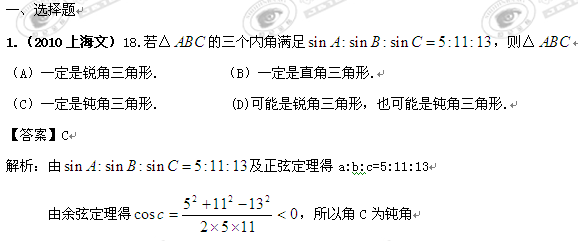 2011年高考数学复习最新3年高考2年模拟:第5章 平面向量、解三角形 第二节 解三角形