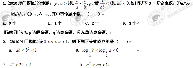 2011年高考新课标复习模拟题精析:考点18、不等关系与一元二次不等式