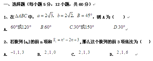 河南省开封市第二实验高级中学10-11学年高二上学期第一次月考(数学)