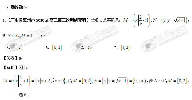 广东省各地2010届高三数学联考试题分类汇编(1):集合与常用逻辑用语
