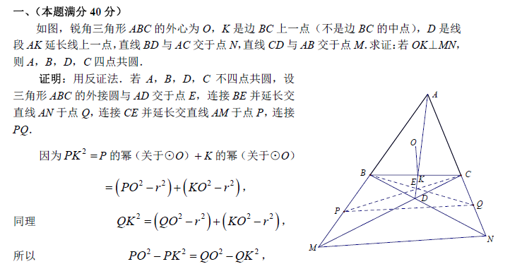 2010年全国高中数学联赛加试试题参考答案与评分标准