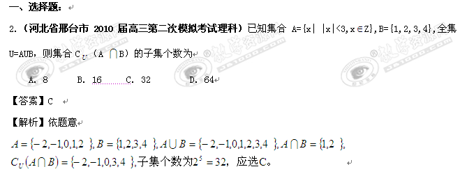河北省各地市2010年高考数学最新联考试题分类大汇编(1)集合